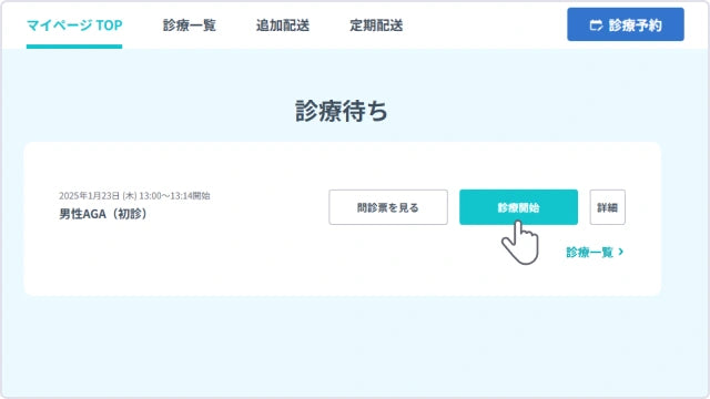 予約日時になったら、DMMオンラインクリニックの公式サイトの「診察開始」を選択します。