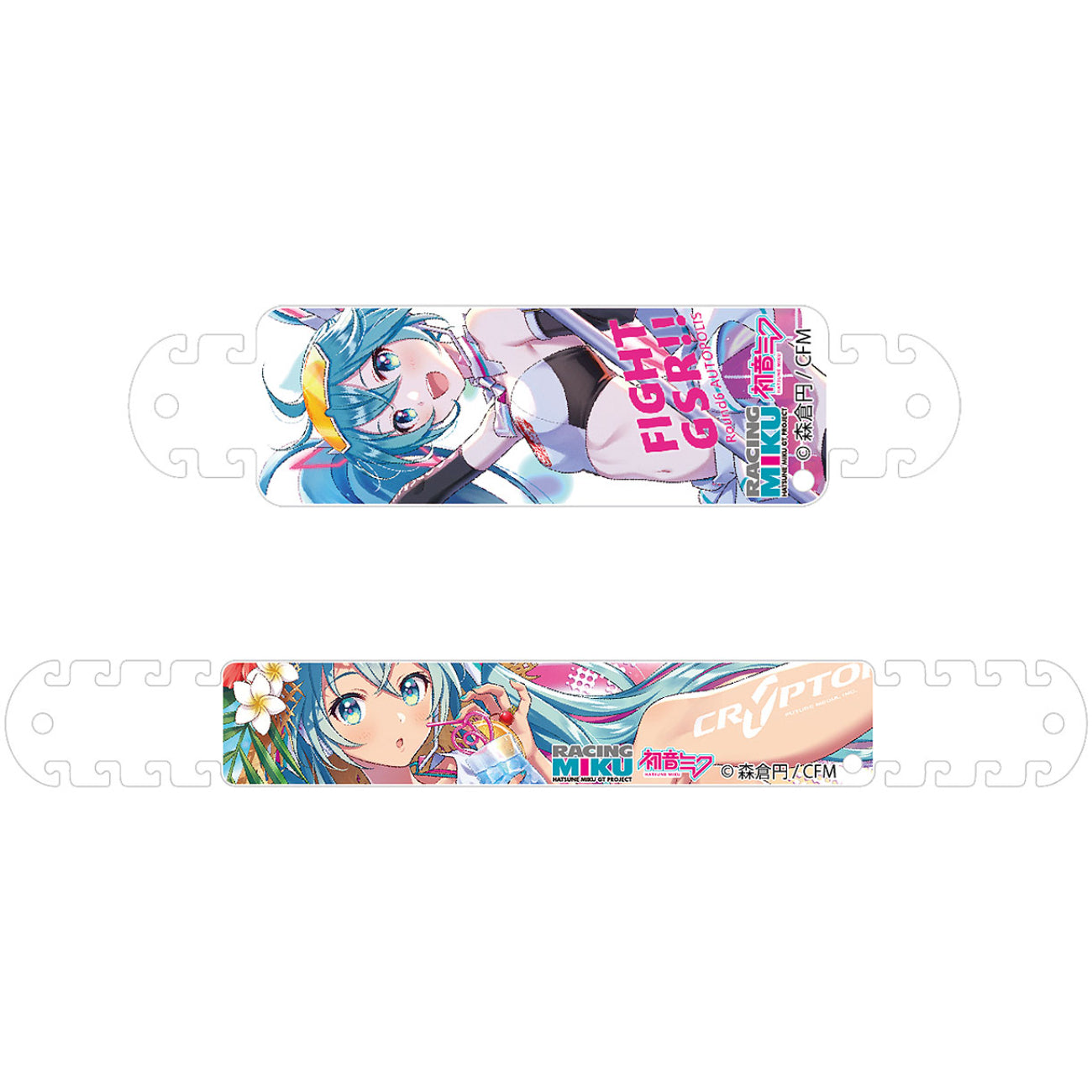 森倉円さんデザインのかわいいレーシングミクが印刷されたマスクフックが登場!マスクをつける際、耳が痛くならないように使用するマスクフック。マスクフック(大)、(小)セットとさらにキーチャームがついてくる。2021Ver.はマスクフック(大)、(小)ともにキャラクターのデザイン!チャームも大きくなりました。